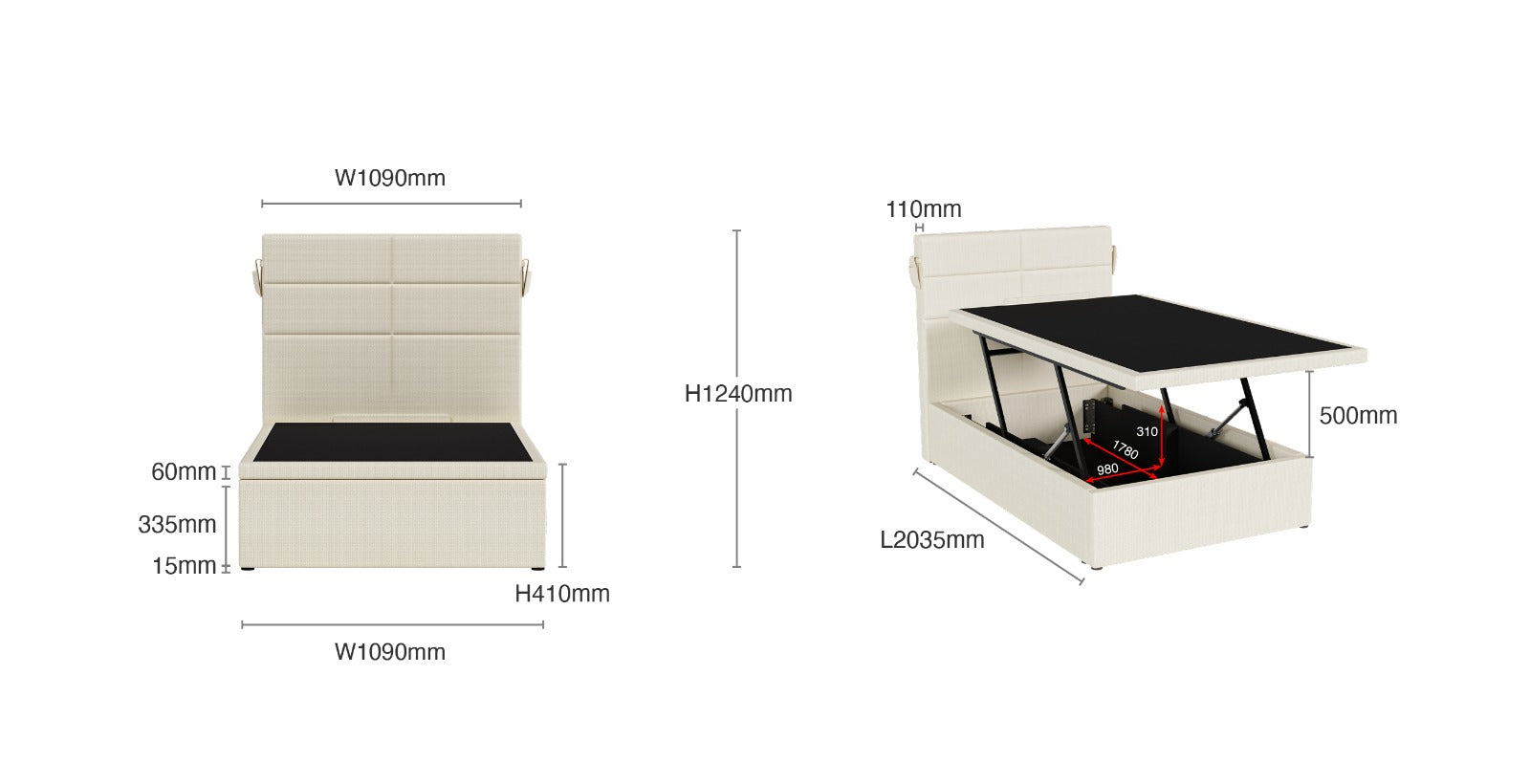 Super Single: L2035x x W1090 x H1240mm