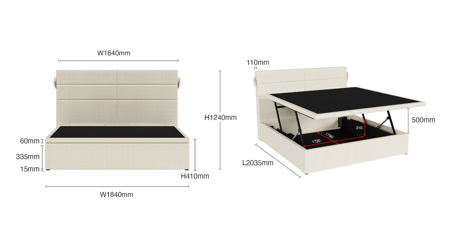 King: L2035x x W1840 x H1240mm