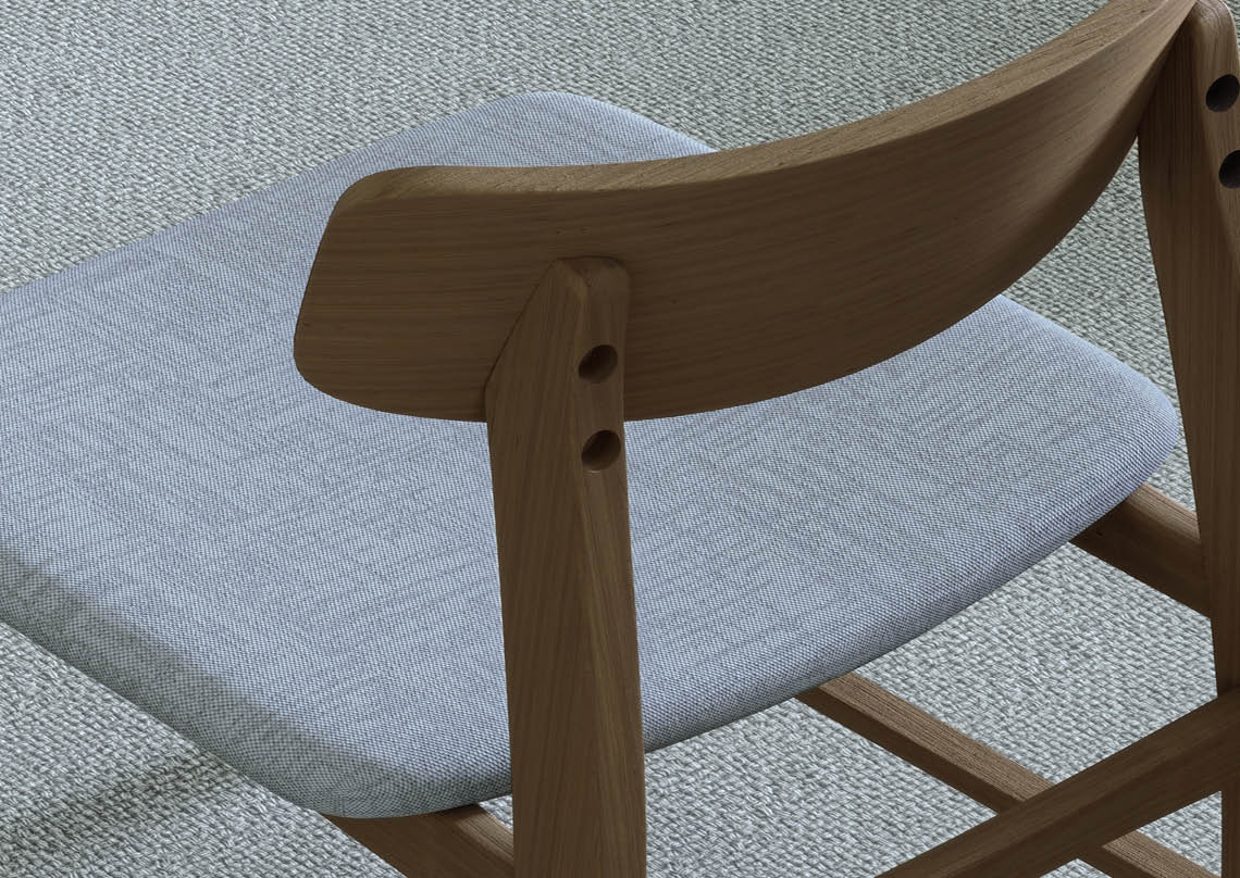 Wooden Chair with Fabric Upholstery