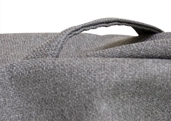 The sewn-on handles allow a sturdy grip for moving the bean bag around.