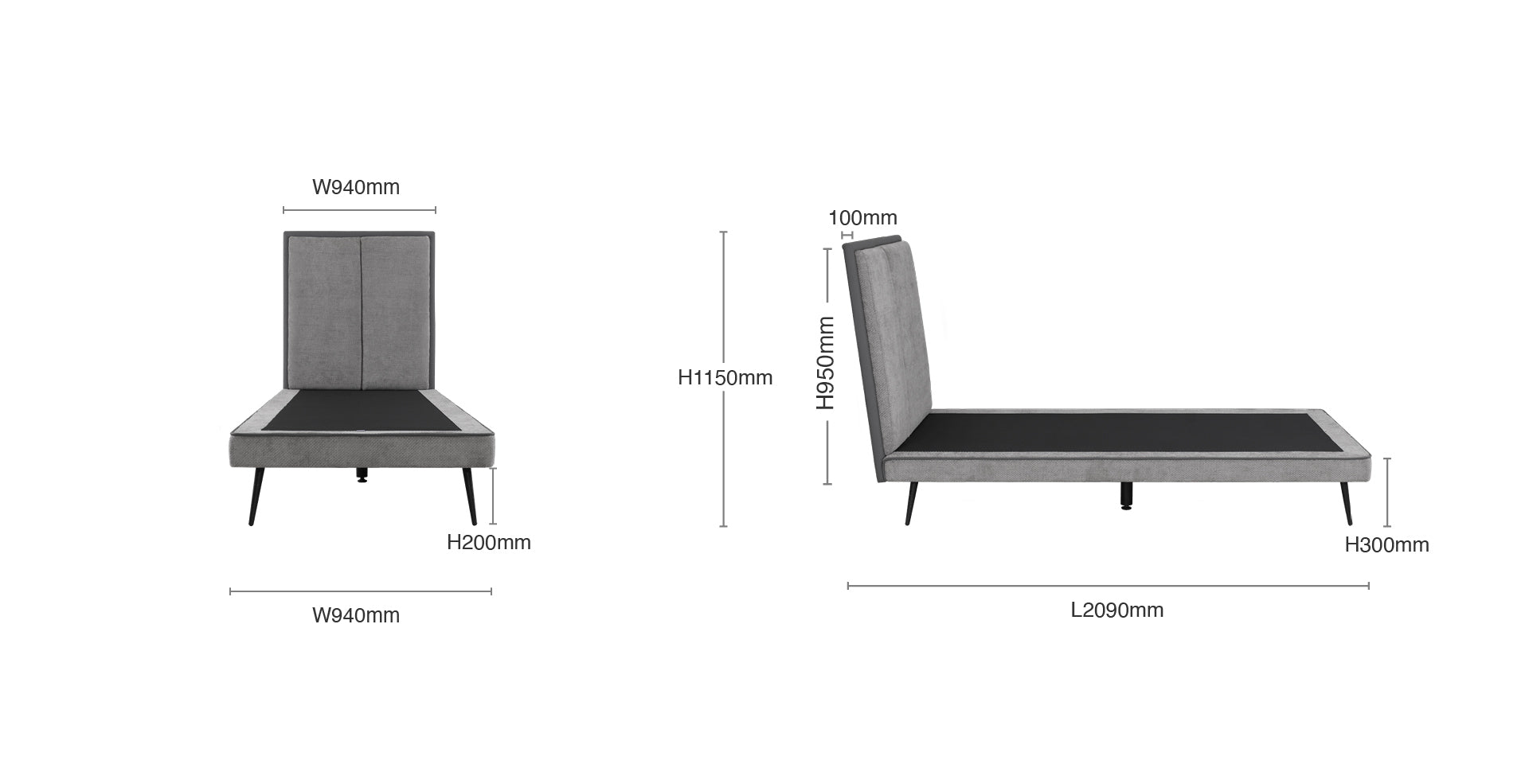 Single: L2090 x W940 x H1150mm