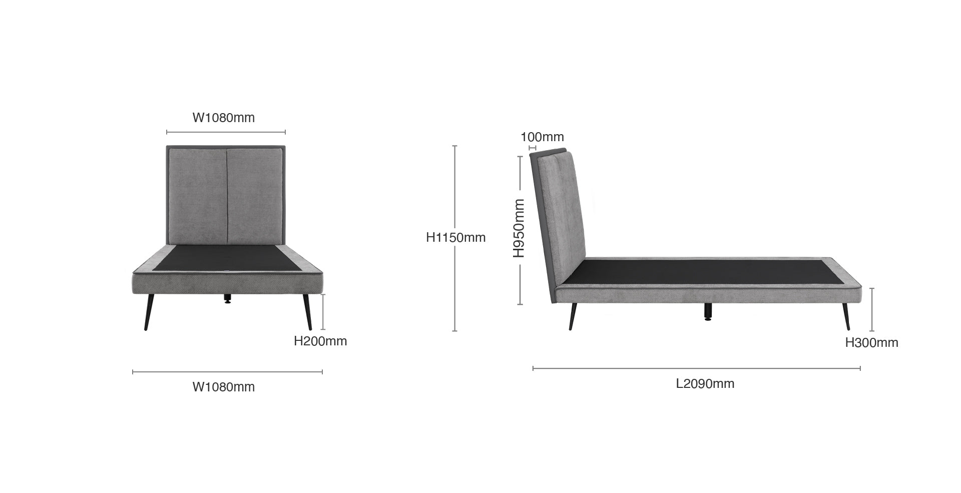 Super Single: L2090 x W1080 x H1150mm