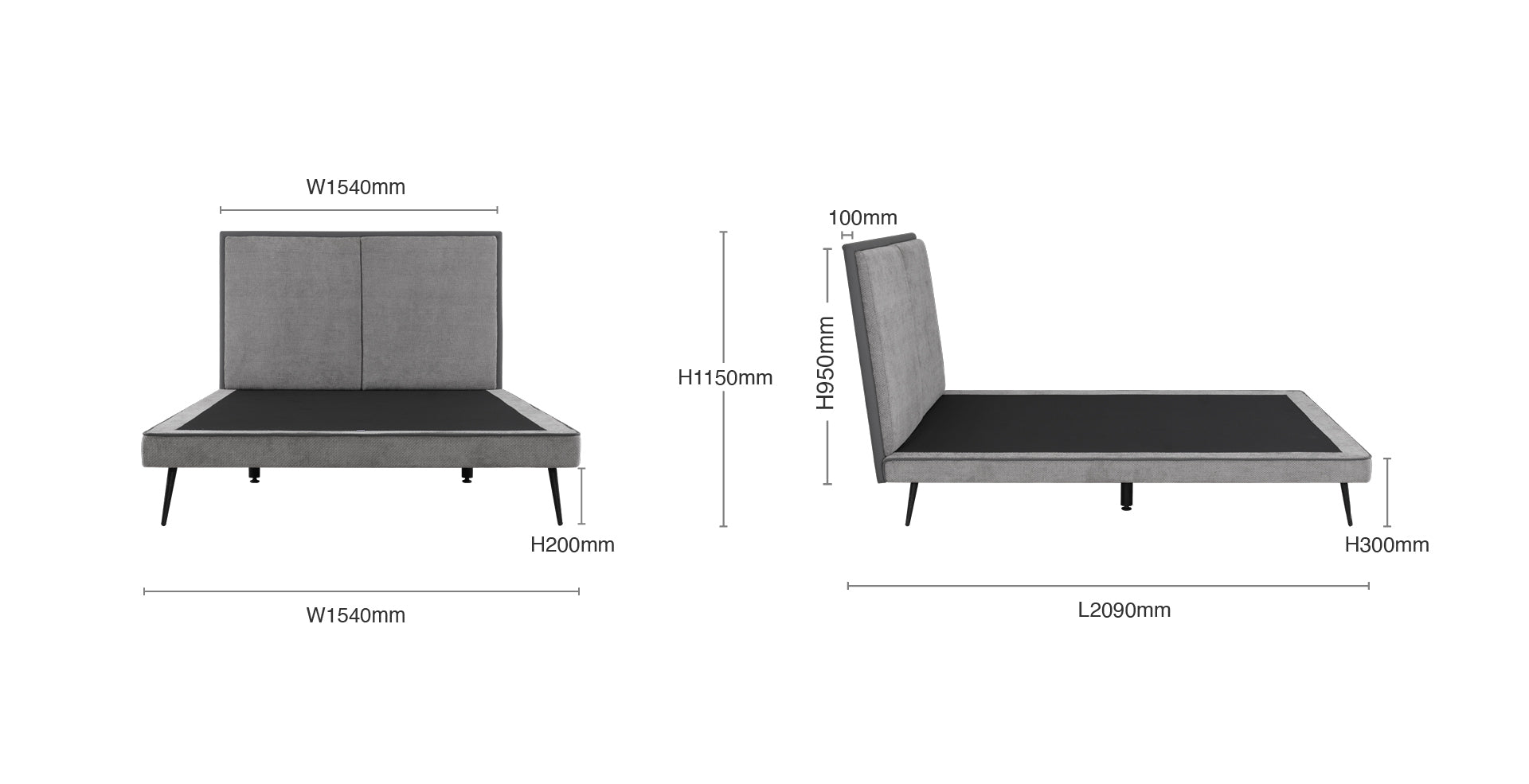 Queen: L2090 x W1540 x H1150mm